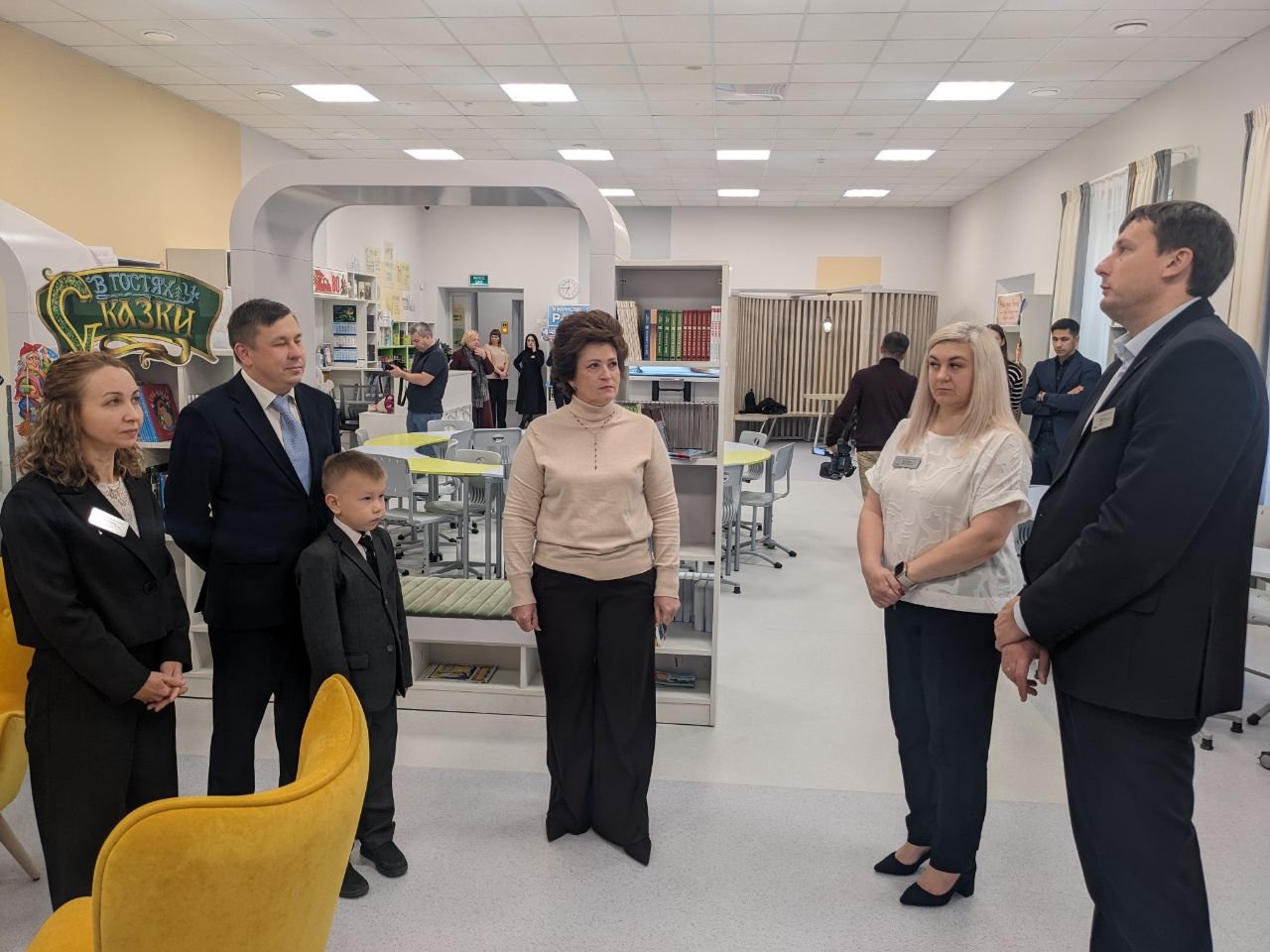 Далее гости оценили пространство библиотеки и ее наполнение. Книжный фонд насчитывает порядка 7000 штук изданий. Учащиеся полностью обеспечиваются учебниками. Поэтому сотрудники библиотеки стремятся привить детям культуру обращения с книгами, начиная с 1 класса. В старших классах проводятся внеклассные мероприятия по ремонту учебников.